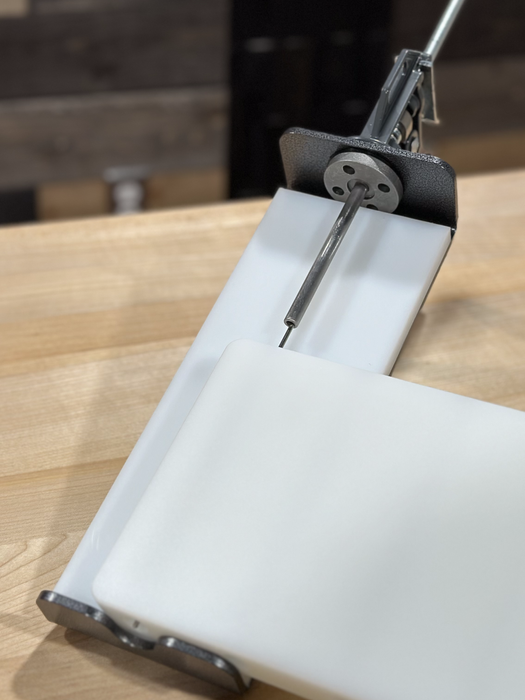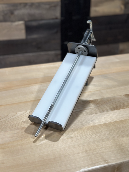 The extraction die of the Manual Extractor is equipped with a threaded tip, enhancing its adaptability for different sized molds. This threaded feature allows for easy removal and interchangeability, accommodating various gauge sizes and ensuring a versatile tool for cannagar production.